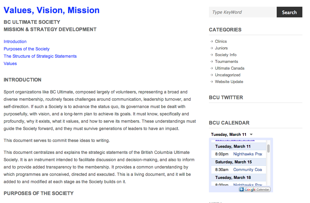 Over the years, I have frequently been asked by teachers and other youth programs if there are any lesson plans for Ultimate they could access. There are a few out there, but, nothing specific to British Columbia that I was aware of. Then in 2011, a group of students at the University of the Fraser Valley prepared units of lesson plans targeted at the Grade 4, Grade 7 and Grade 10 levels as a part of one of their Kinesiology program courses. The lesson plans were all prepared to be consistent with the BC Ministry of Education’s Curriculum Guidelines for each grade.